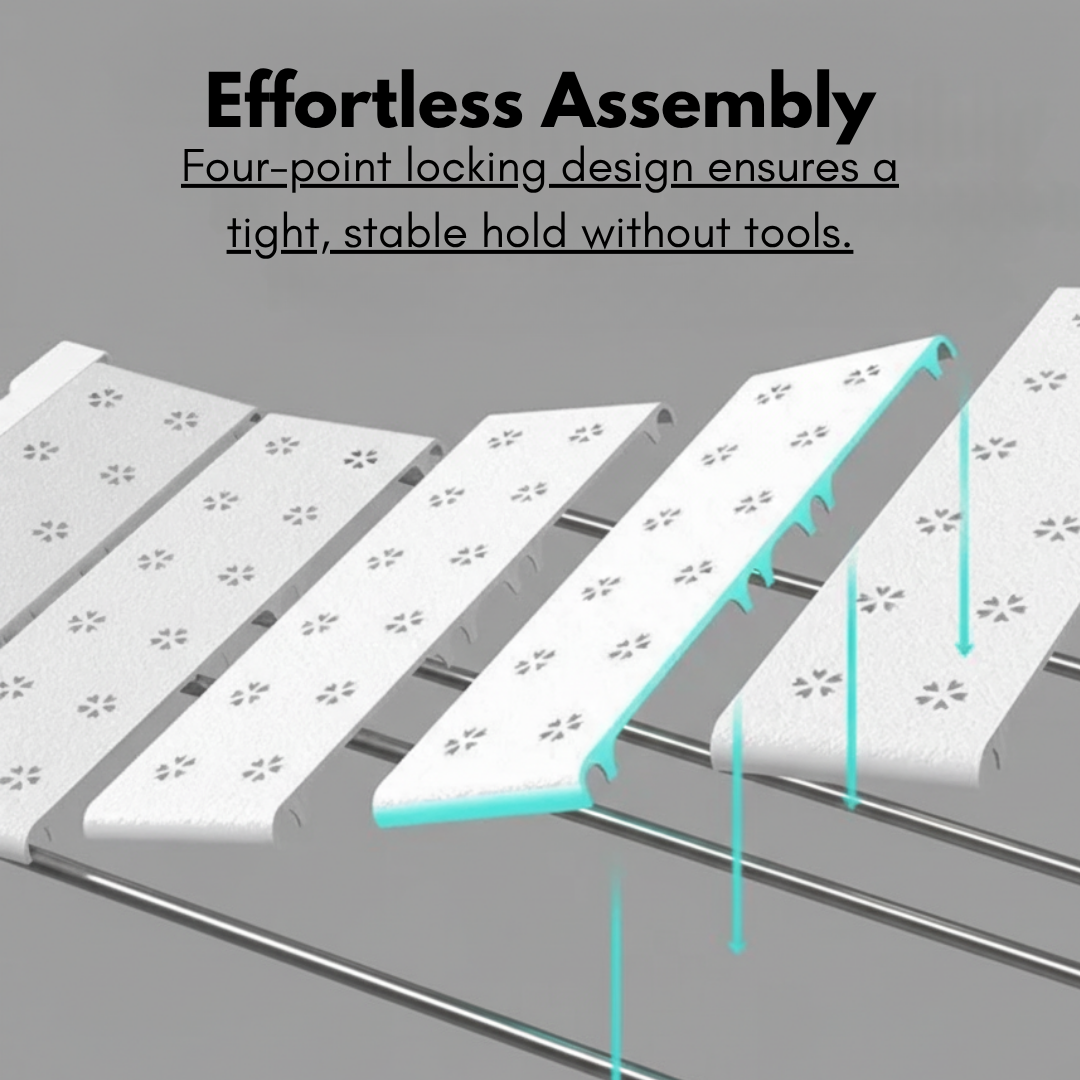 Add more room instantly without tools or drilling. The adjustable rack locks firmly in place between walls or panels, giving you a sturdy, customizable shelf wherever you need it — perfect for closets, cupboards, and laundry areas.